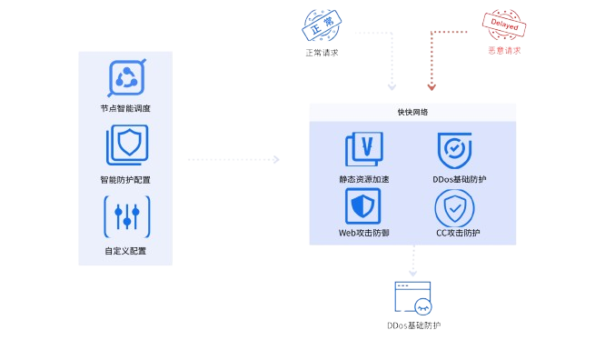 面对日益复杂的网络威胁和攻击,传统的CDN加速服务无法抵御大规模的网络攻击, 但游戏、金融、电商、医疗、企业互联网领域等易受攻击且必须保障加速的业务场景, 需要既有安全防护能力又拥有稳定高效的安全CDN服务。 快快网络为您一站式提供安全和加速的整体解决方案,可以避免因频繁遭受攻击导致的站点故障、 用户流失等企业损失问题。